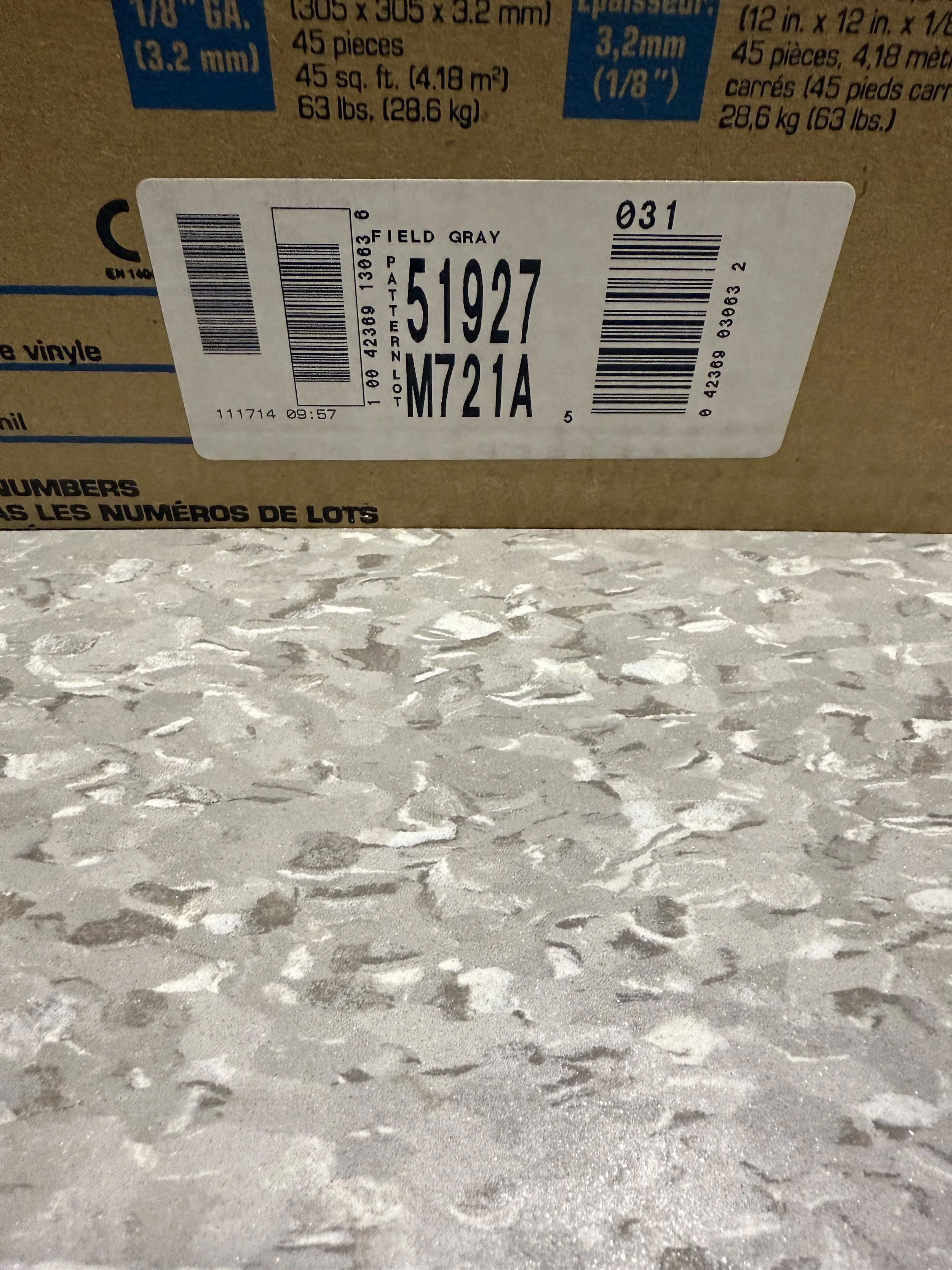 Store › 675 sqft of Vinyl Composition Tile (VCT) Image 1 of 4 Image 2 of 4 Image 3 of 4 Image 4 of 4 675 sqft of Vinyl Composition Tile (VCT) $3.49 Armstrong VCT Standard Excelon Imperial Texture 12" x 12" x 1/8" (3.2 mm) Color: 51927 Field Gray Quantity: Add To Cart Added! Armstrong VCT Standard Excelon Imperial Texture 12" x 12" x 1/8" (3.2 mm) Color: 51927 Field Gray