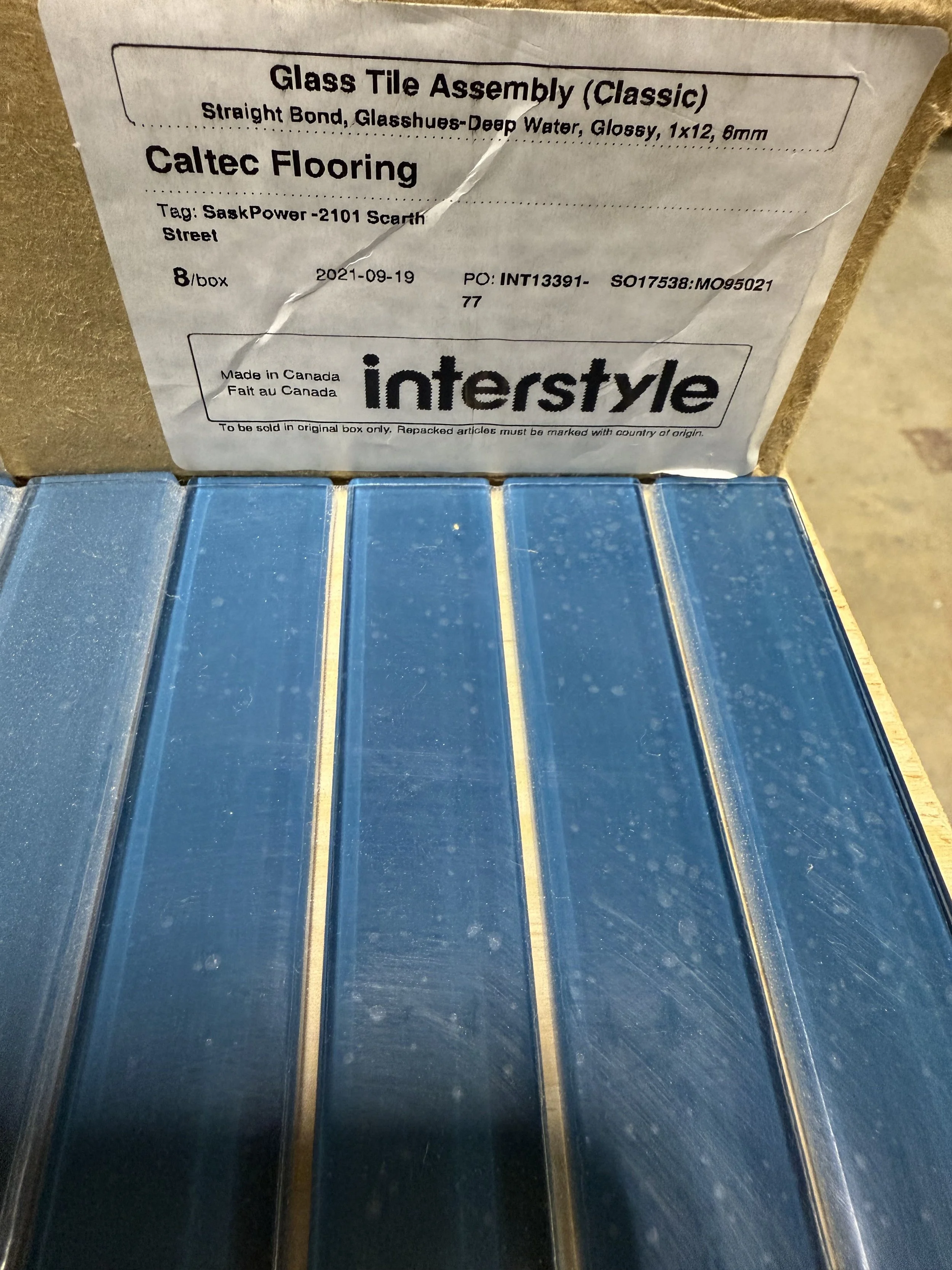 Store › 79 sqft of Glass Tile Image 1 of 6 Image 2 of 6 Image 3 of 6 Image 4 of 6 Image 5 of 6 Image 6 of 6 79 sqft of Glass Tile $14.99 Interstyle Ceramic & Glass Interstyle Glasshues Series 1"x12" Color: Deep Water - Glossy Quantity: Add To Cart Added! Interstyle Ceramic & Glass Interstyle Glasshues Series 1"x12" Color: Deep Water - Glossy